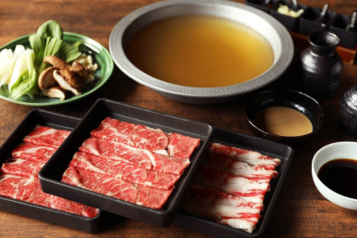 厳選した牛テールから抽出した濃厚エキスを使用した、深いコクとまろやかな風味の贅沢な牛テールスープを使用しております。スープにサッとお肉や野菜をくぐらせ、国産橙の風味をきかせたぽん酢や、くるみとピーナッツを加えた胡麻ダレをつけてお召し上がりください。