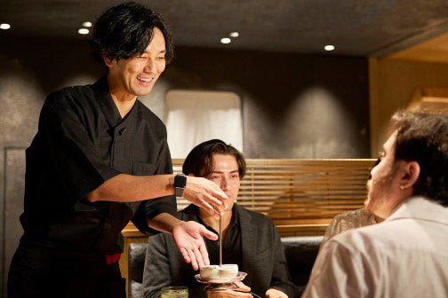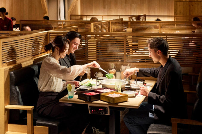 美味しい状態で召し上がっていただく為には、お肉は1枚ずつお野菜は少量を湯通し、タレに優しく絡めます。その他にも沢山の美味しい食べ方がありますので、スタッフが一緒にお客様だけの「美味い」を見つけるサポートをさせていただきます。