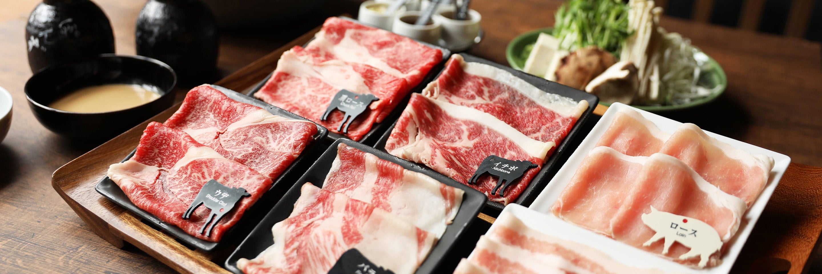 しゃぶしゃぶ・すき焼きをもっと楽しめるよう、世界で見つけた薬味をご用意しております。初めはタレ本来の美味しさを楽しんでいただき、少しずつ薬味を足し、お客様好みの美味しいタレをお作りいただけます。